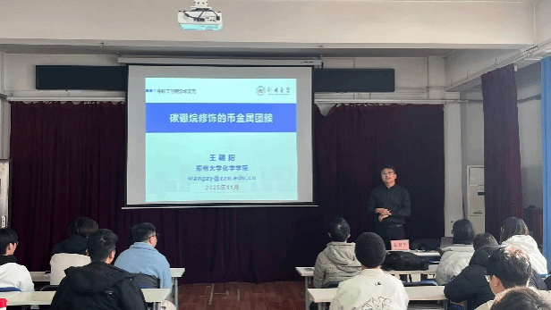 2025年11月27日上午,应我校科技处、太阳集团网址8722和先进材料研究中心邀请,郑州大学化学学院教授,博士生导师,国家级青年人才王朝阳教授做客我校建校70周年系列学术活动,在2号实验楼543会议室作了题为“碳硼烷修饰的币金属团簇”的专题学术报告。报告会由太阳集团网址8722副院长黄超主持,太阳集团网址8722、先进材料研究中心等院部的相关学科教师和研究生70余人参加了报告会。