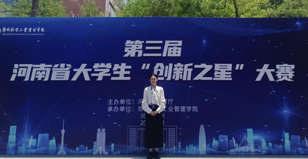 为了挖掘自己的创新潜能,她组建团队积极参加各类创新创业大赛。共获省级奖项2项,校级奖项1项,包括首届全国大学生职业规划大赛河南省总决赛铜奖、河南省“挑战杯”大学生课外学术科技作品竞赛二等奖、河南省大学生创新创业训练计划项目省级立项、第九届中国国际“互联网+”大学生创新创业大赛竞赛优秀奖等、郑州市求职技能大赛太阳集团tcy8722校赛二等奖。