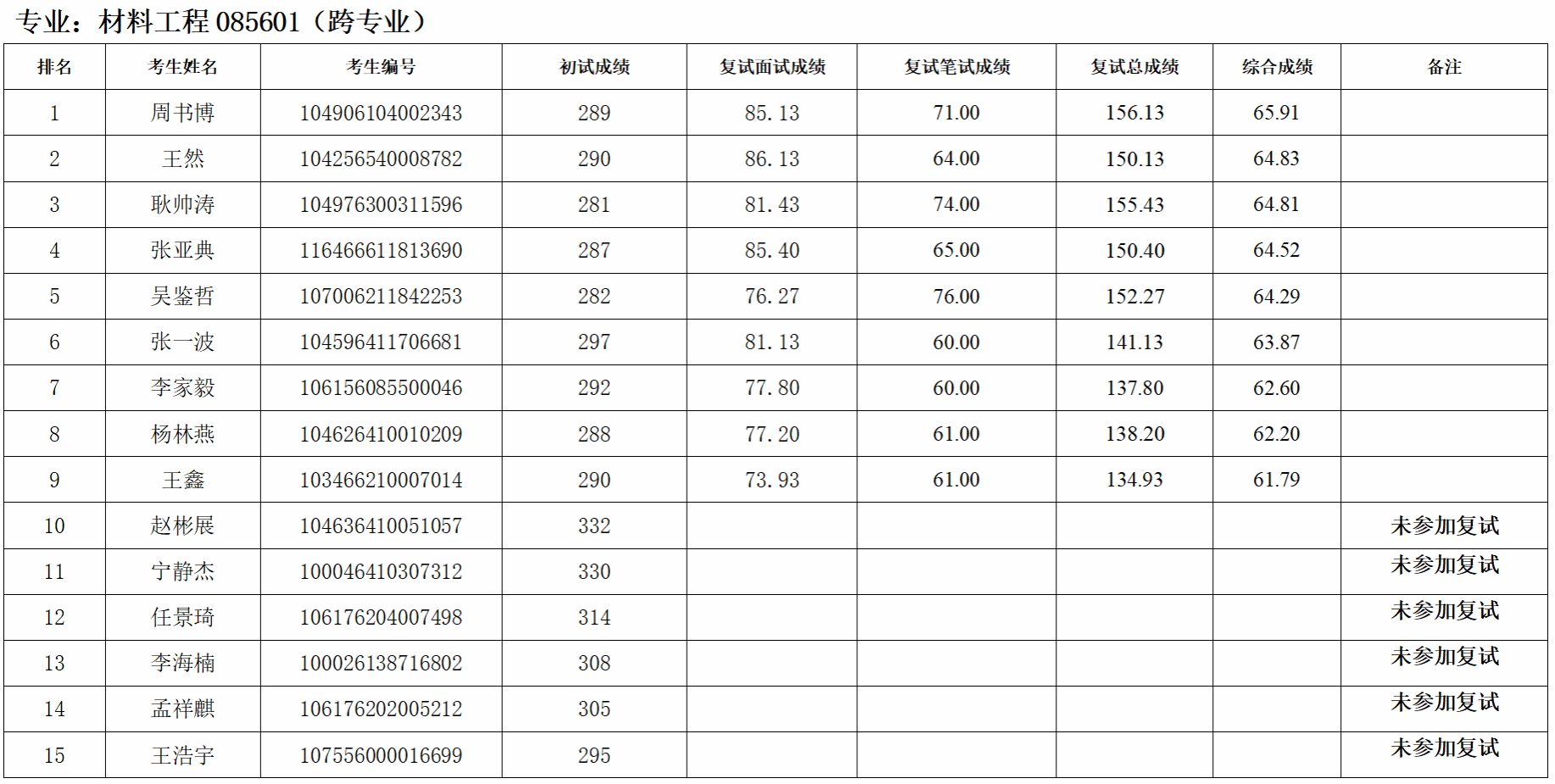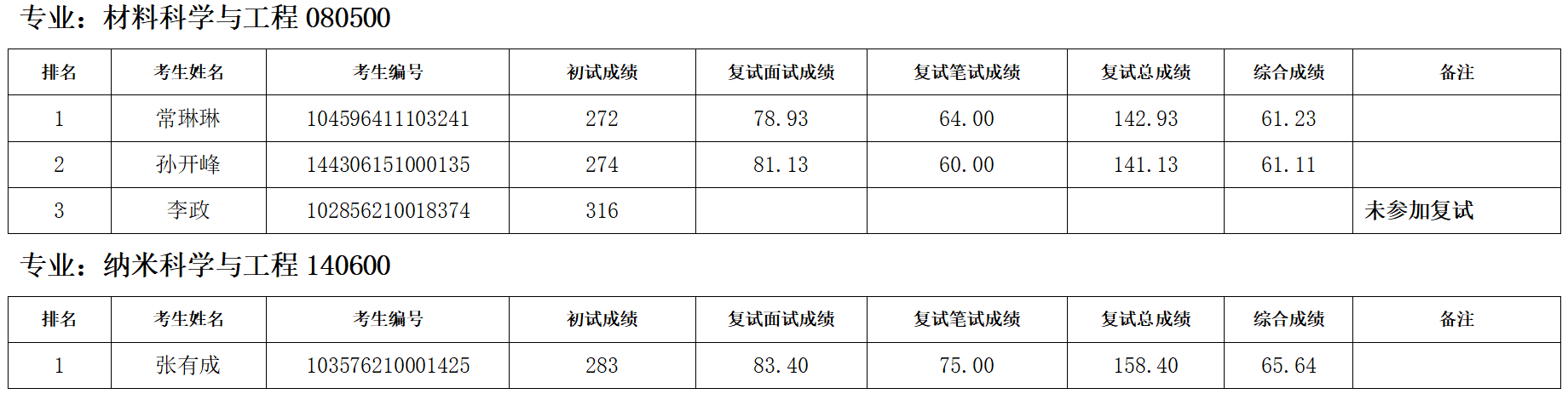 按照研究生招生工作安排,我院于4月13日进行了调剂第三批复试,现对考生综合成绩进行公示: