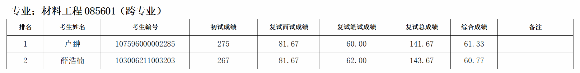 按照研究生招生工作安排,我院于4月17日进行了调剂第六批复试,现对考生综合成绩进行公示: